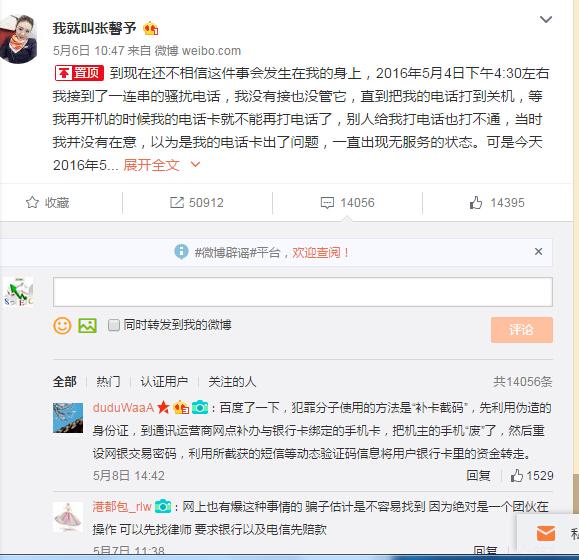 到现在还不相信这件事会发生在我的身上,2016年5月4日下午4:30左右我接到了一连串的骚扰电话,我没有接也没管它,直到把我的电话打到关机,等我再开机的时候我的电话卡就不能再打电话了,别人给我打电话也打不通,当时我并没有在意,以为是我的电话卡出了问题,一直出现无服务的状态。可是今天2016年5月5日下午2点我准备去银行取钱的时候我发现我银行卡里的15万元全部没了。我立即给中国光大银行的客服打电话,客服小姐说就在昨天下午的5点20左右我的钱被取走了,而这个时间正好是昨天我接到骚扰电话电话关机后发生的,我又给中国电信打电话,发现我的卡已经成了空号,电话卡在我自己手里怎么会莫名其妙的成了空号?给电信客服打电话问他有没有可能被呼死或者复制,客服信誓旦旦的告诉我只有本人持身份证到柜台才可以办理。后来又经过查询原来是给我打骚扰电话的人,趁着我电话关机的时候复制了我的电话卡后,又用手机银行把我银行卡里的钱全转走了!!!!!!!!@中国电信 我想问问没有身份证,也不是我本人怎么就能把我的电话卡复制,转走我的钱!!而光大银行泄露客户信息,卡号,电话号这都太可怕了!!!辛辛苦苦工作几年攒的钱就这么没了?谁来给我负这个给责任???@平安北京 @人民网 @中国光大银行 @北京晚报 @京华时报 @北京电视台 @北京热门事儿