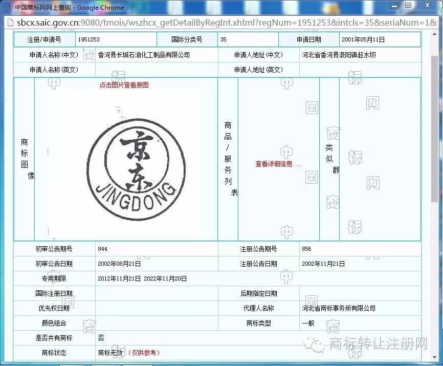 京东商标被撤销了,今后35类注册号为1951253的京东商标及37类注册号为1948621的商标无效了!这里有一点要提醒,这个京东商标的持有人是香河县长城石油化工制品有限公司,而非北京京东世纪贸易有限公司。注册时间也很早,在2001年05月11日就提出了申请,而此时,其它大部分京东商标持有人北京京东叁佰陆拾度电子商务有限公司还没有成立。